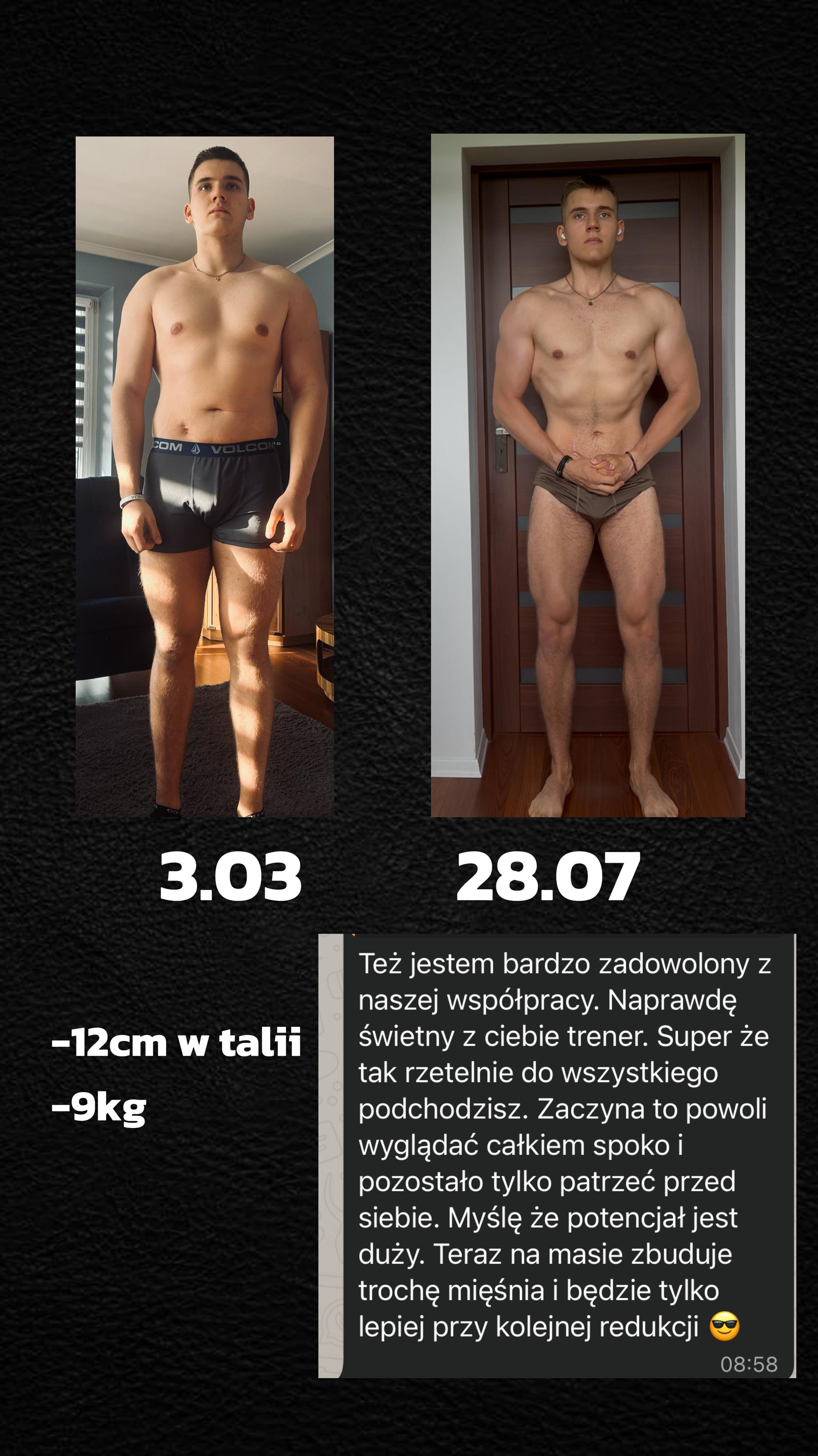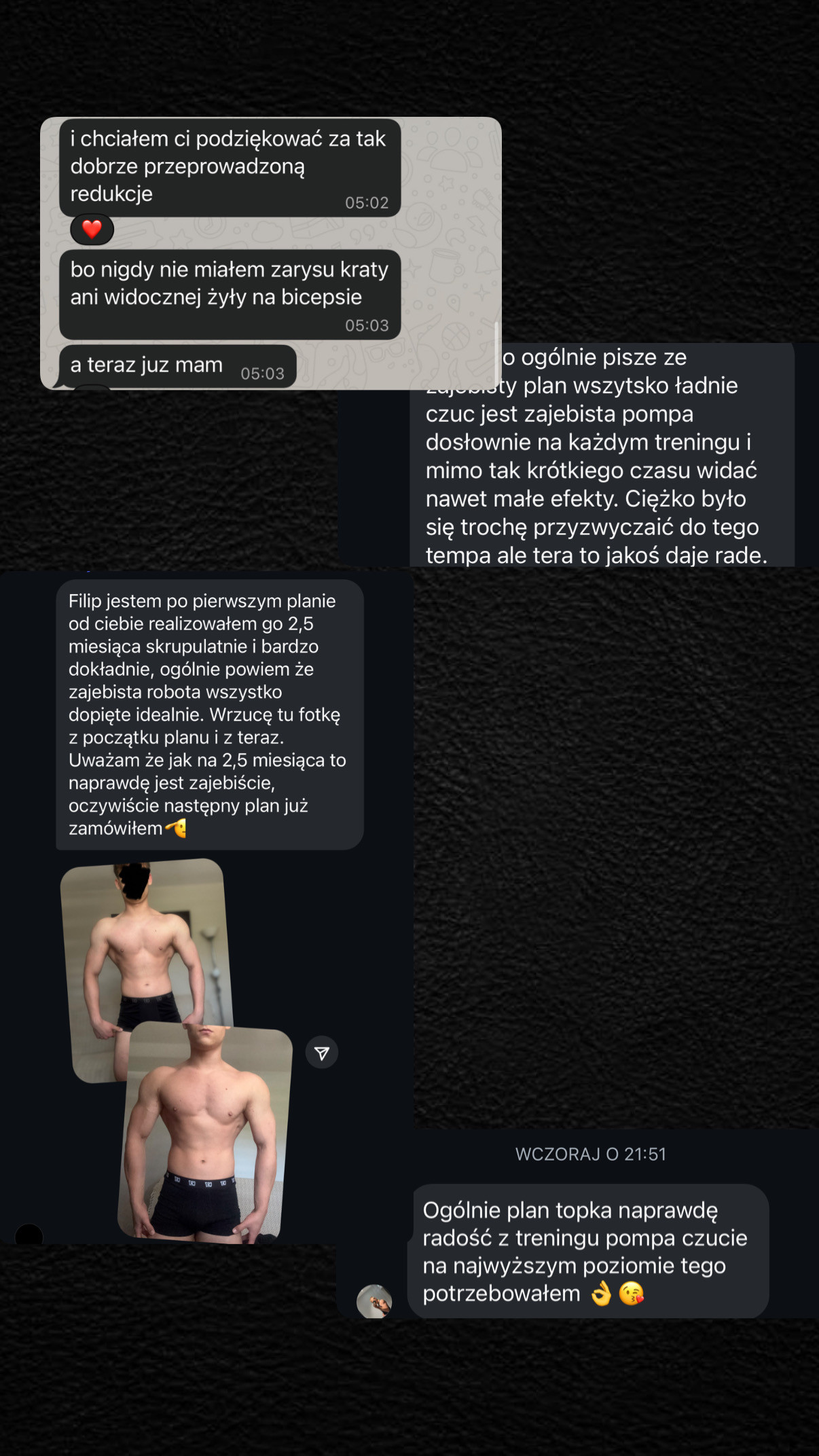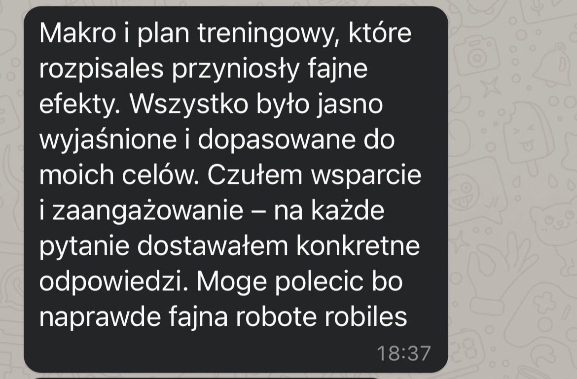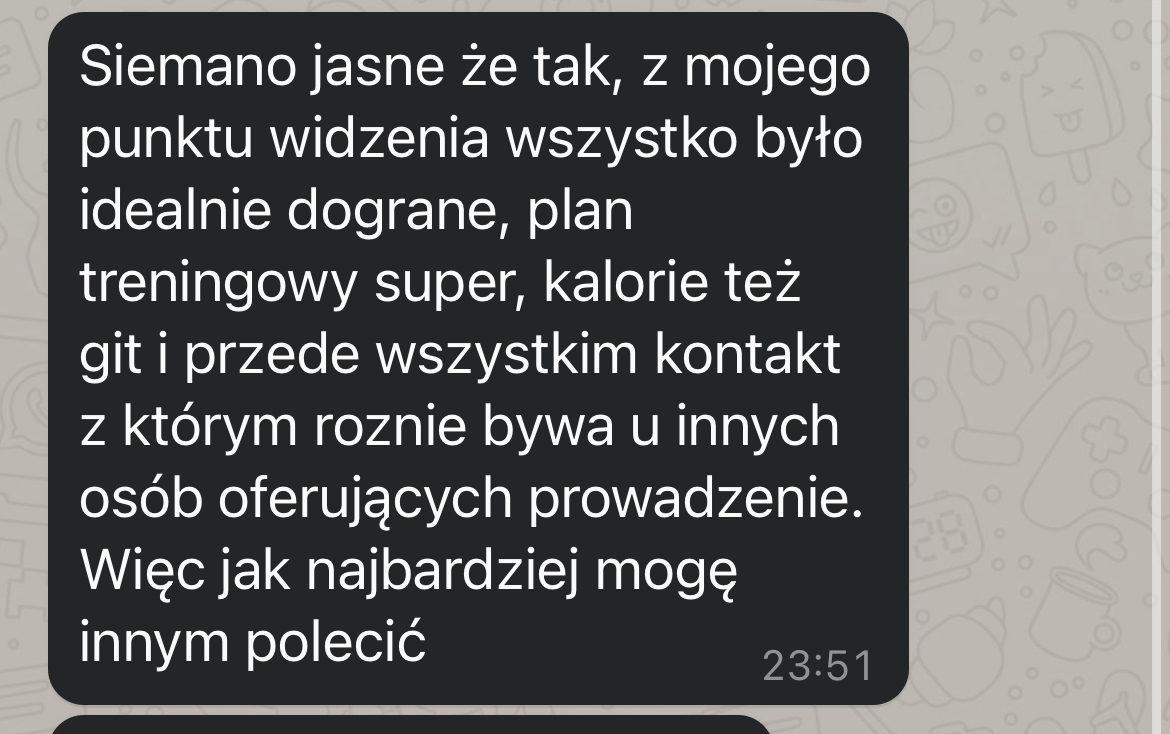 Moje metody treningowe oparte na badaniach naukowych, wieloletnim doświadczeniu przy pracy z podopiecznymi, oraz wiedzy treningowej, która poskutkowała wieloma sukcesami na scenie, pozwolą Ci zyskać najlepszą sylwetkę jaką kiedykolwiek miałeś. Nie trać czasu na trenerów którzy sami nie potrafią się przygotować.