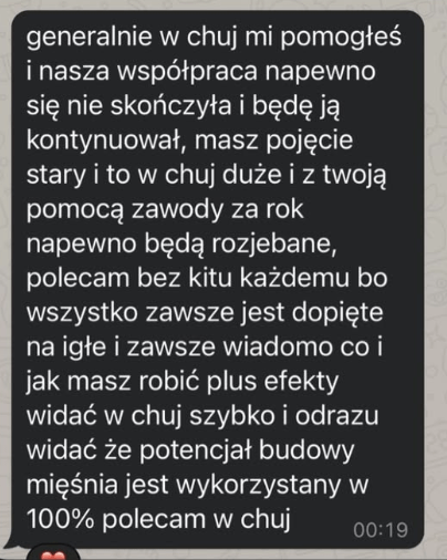 Moje metody treningowe, oparte na badaniach naukowych, wieloletnim doświadczeniu przy pracy z podopiecznymi, oraz wiedzy treningowej, która poskutkowała wieloma sukcesami na scenie, zapewnią Ci doskonałe efekty. Nie trać czasu na trenerów którzy sami nie potrafią się przygotować.